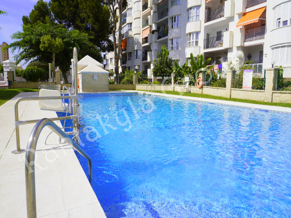 Los Bolichesin keskustan tuntumassa sijaitsevassa taloyhteisössä täysin peruskorjattu kauniisti sisustettu kahden makuuhuoneen kerrostalohuoneisto (kolmas mh suljettu). Avara olohuone, erillinen keittiö, 2 kylpyhuonetta. Vuodepaikat kolmelle. Aurinkoinen lasitettu, markiisein varustettu parveke etelään. Ilmalämpöpumppu/ilmastointi olohuoneessa. Taloyhteisön suljetulla piha-alueella parkkitilaa. Uima-allas ja puutarha avoinna kesäkaudella. Kaikki palvelut lähettyvillä. Rantaan n. 200 m. Minimi vuokra-aika on 3 kk. Vuokrataan lähinnä aikuisille (lapsettomille) pariskunnille.
