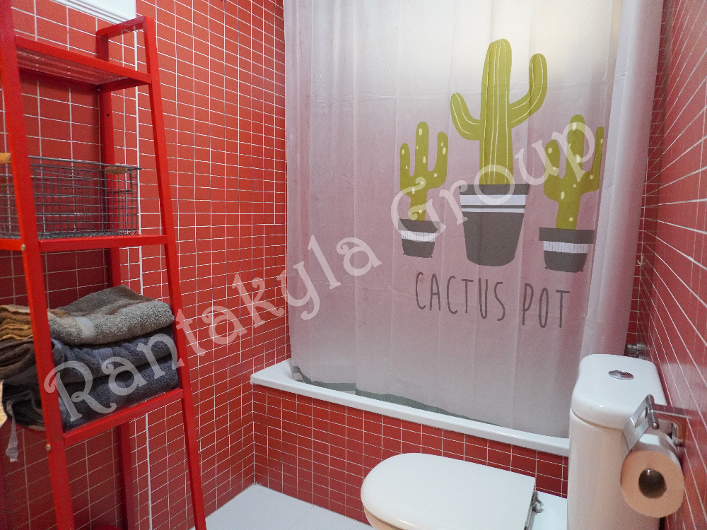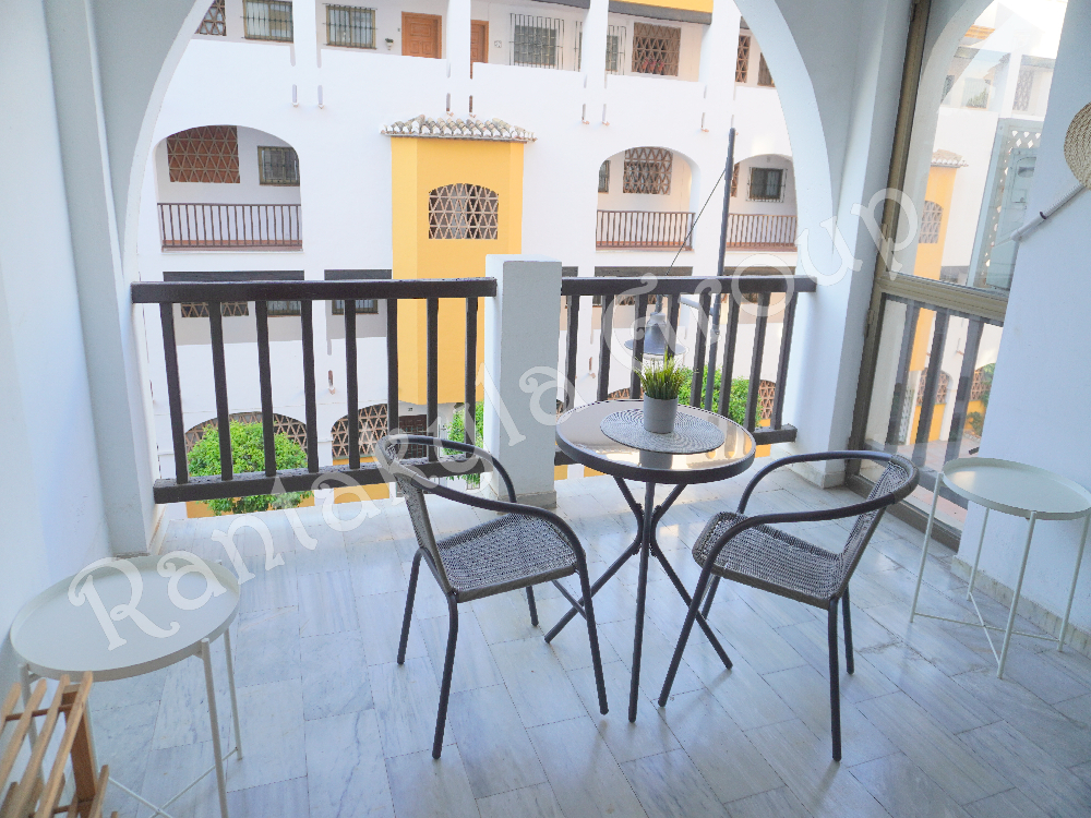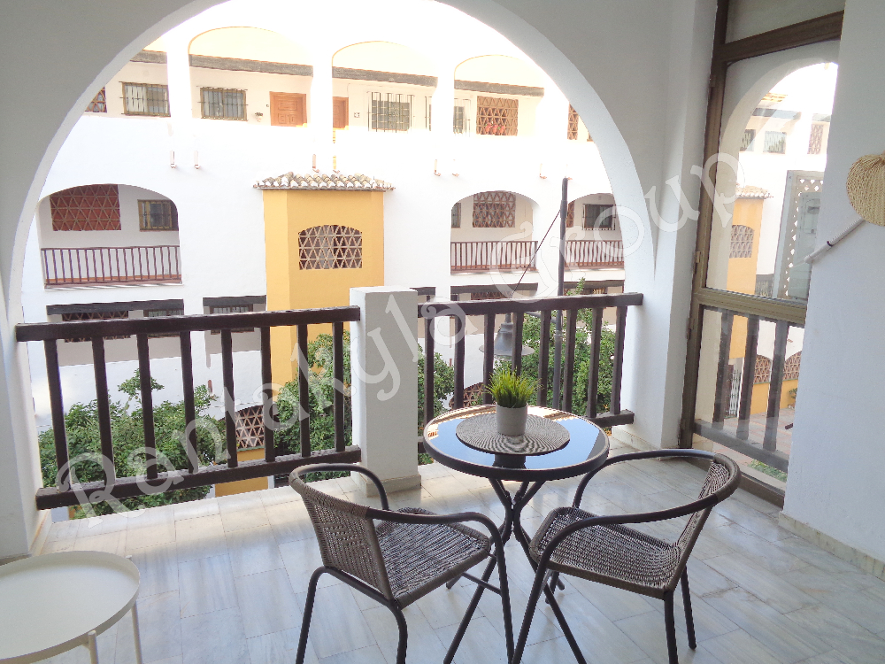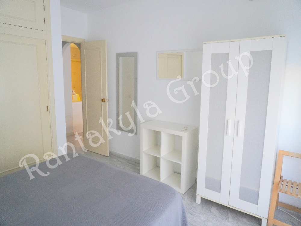 Fuengirolan keskustan läheisyydessä sijaitsevassa hyvinhoidetussa vanhemmassa kerrostalossa peruskorjattu valoisa yhden makuuhuoneen huoneisto. Olohuone, hyvinvarusteltu keittiö, kylpyhuone ja länteen antava iso katettu parveke vilkkaasti liikennöidylle kadulle. Ilmastointi/ilmalämpöpumppu makuuhuoneessa. Wifi-yhteys lisämaksusta. Taloyhteisön uima-allas on käytössä ympäri vuoden. Vehreä puutarha taloyhtiön yhteiskäytössä. Suljetulla pihalla on parkkitilaa (ei numeroituja). Rantaan noin 450 metriä, palvelut kävelymatkan päässä. Minimivuokra-aika on 6 kk.